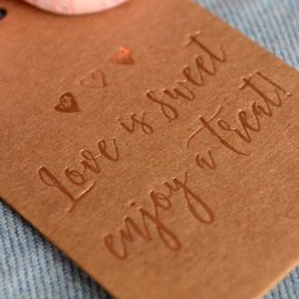 Foiling is a traditional process that uses plates to press the foil into the paper to give it a metallic effect.