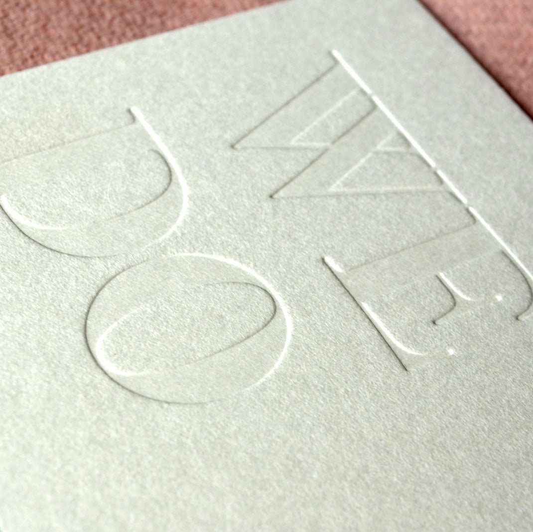 Embossing is the opposite process of letter press, instead of the lettering being pressed into the paper, it is raised.